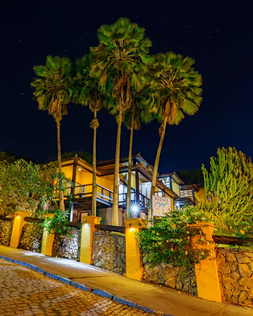 Depois que o sol se põe, a atmosfera do hotel e a brisa do mar convidam à contemplação da natureza e ao relaxamento profundo.