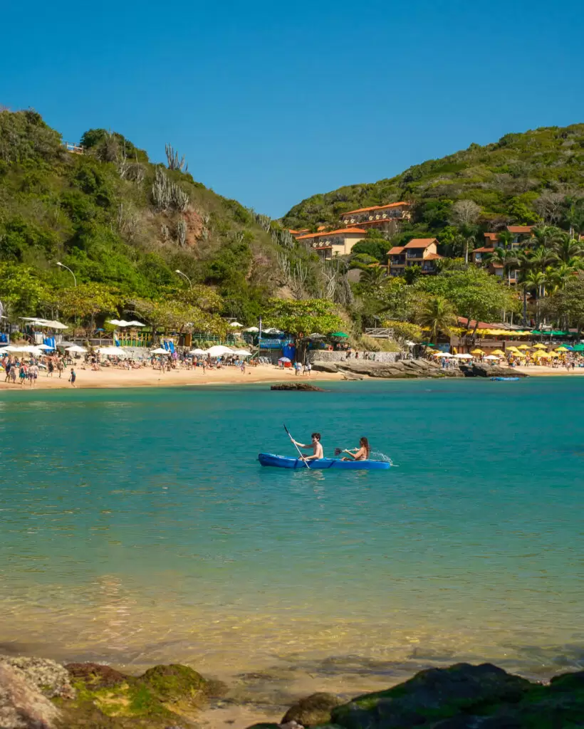 Uma das praias mais charmosas de Búzios, com águas calmas e cristalinas, perfeita para relaxar e praticar snorkel. O visual é paradisíaco e a vista na piscina é o ponto alto do hotel. Distância hotel-praia: 150m.