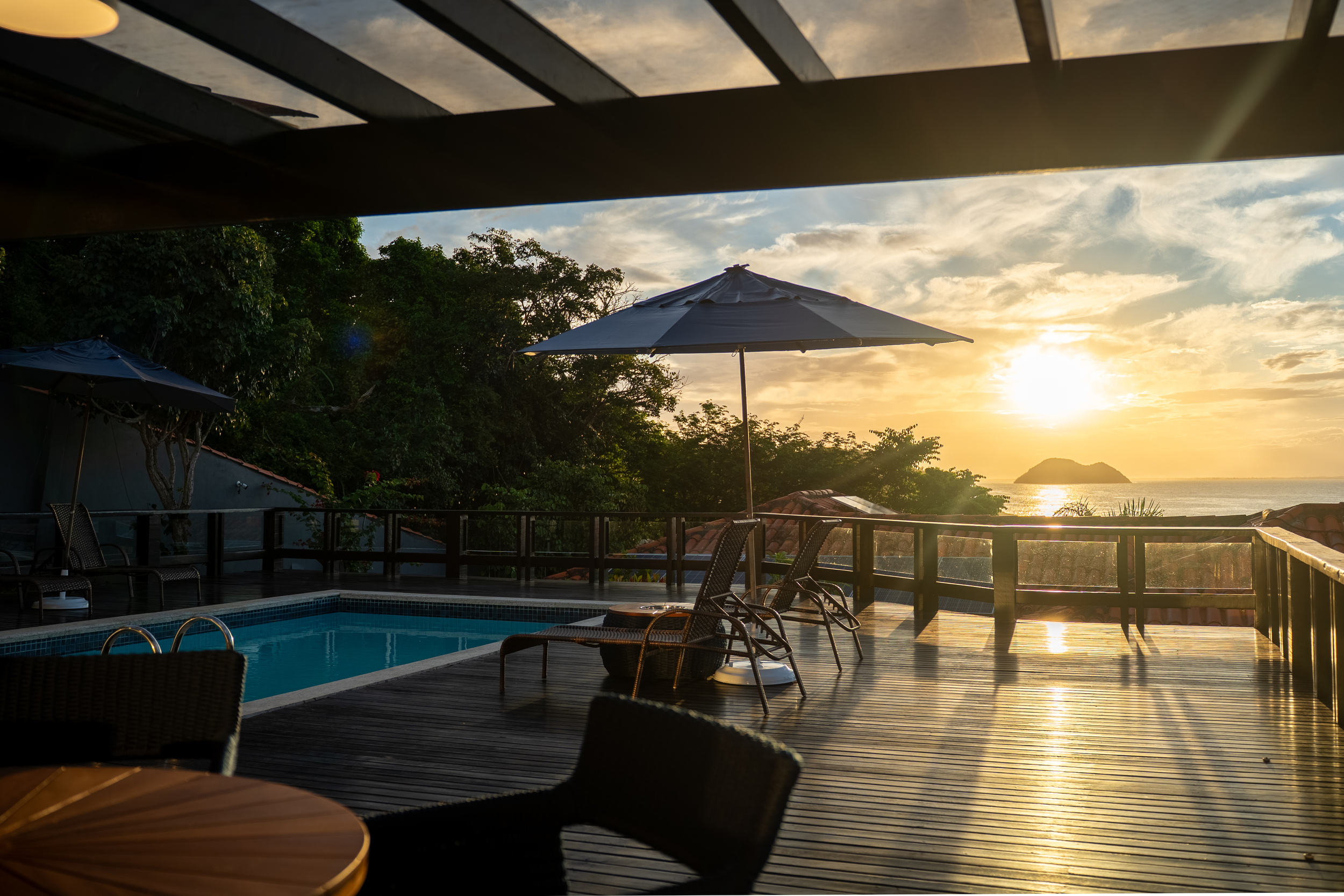 Com mais de 100m², a suíte Master é o espaço mais exclusivo do Búzios Mar. A vista para o mar e a piscina privativa criam o cenário perfeito para dias de descanso e momentos inesquecíveis.
